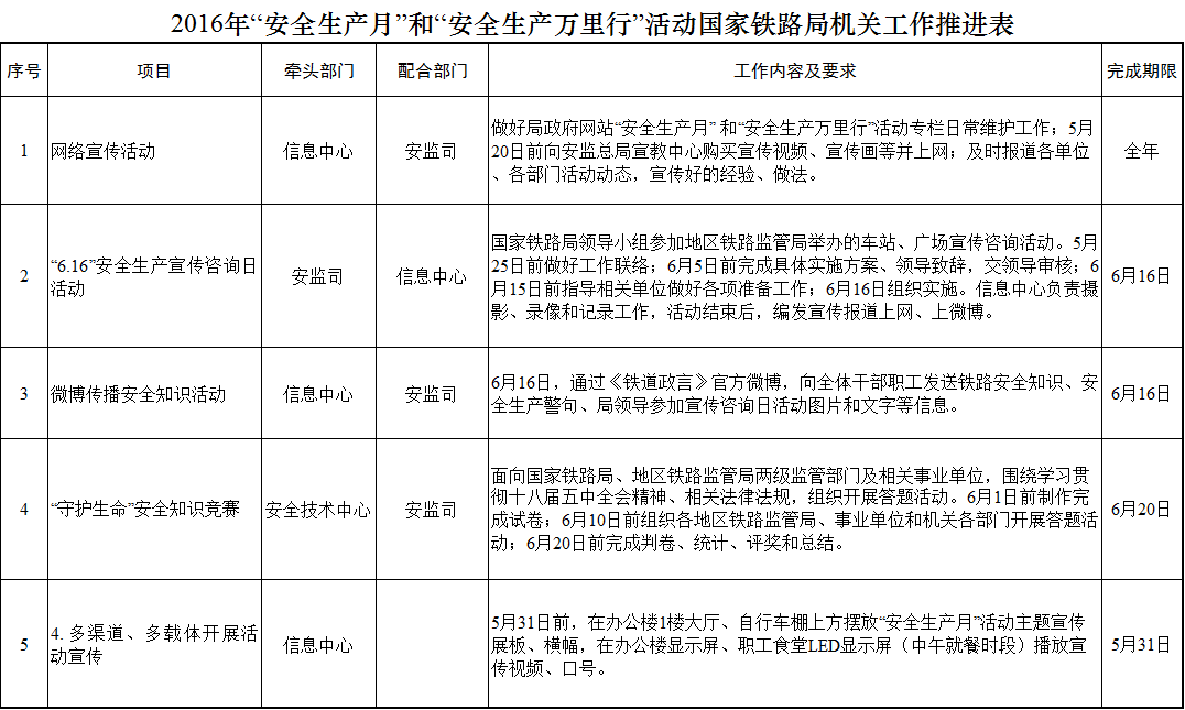 国家铁路局关于印发2016年“安全生产月”和“安全生产万里行”活动实施方案的通知