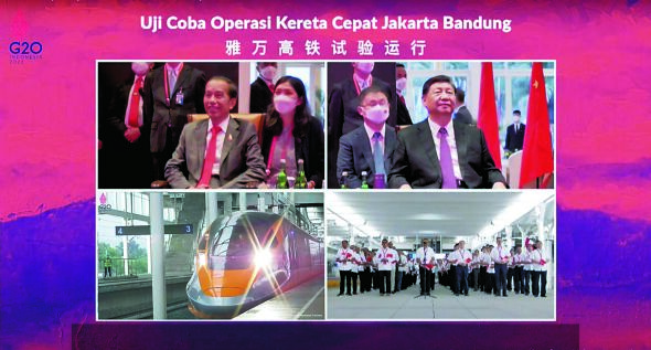 国家主席习近平和印度尼西亚总统佐科共同观摩雅万高铁试验运行