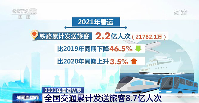 2021年春运结束 全国交通累计发送旅客8.7亿人次