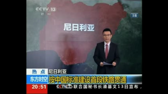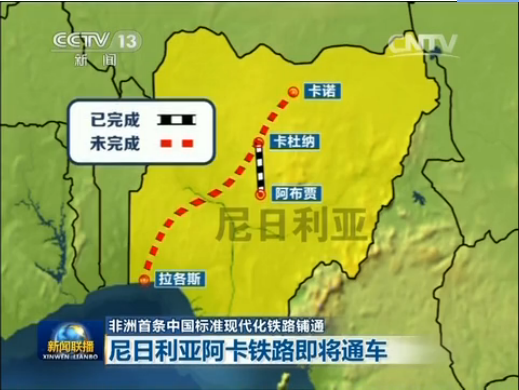 尼日利亚,按中国标准建设首段铁路贯通。(央视《东方时空》)