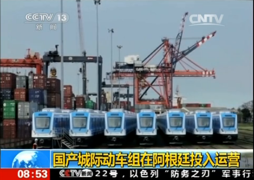 央视新闻频道《朝闻天下》报道国产城际动车组在阿根廷投入运营