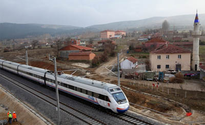 由中国铁建总承包建设的土耳其安卡拉至伊斯坦布尔高速铁路二...