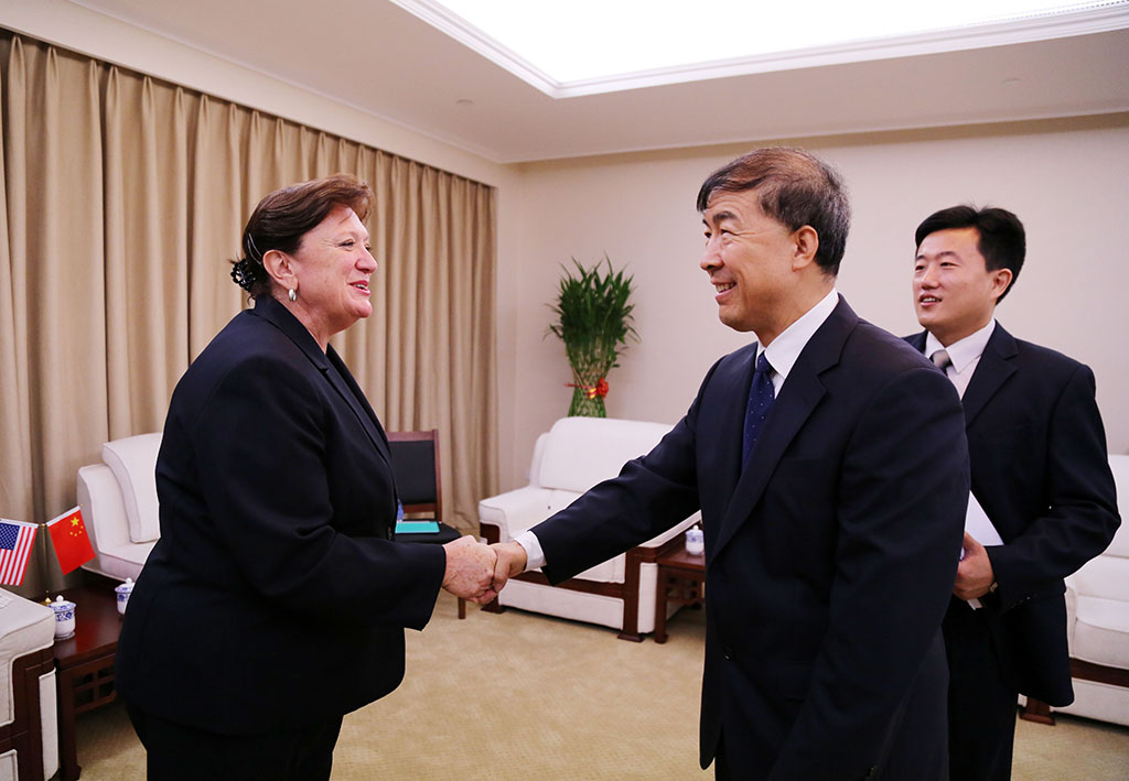 9月10日,国家铁路局副局长傅选义(右二)在北京会见了北美铁道协会交通技术中心总裁丽莎·斯泰博勒(左一)一行,双方就进一步加强中美铁路技术研发和安全监管合作等问题交换了意见。