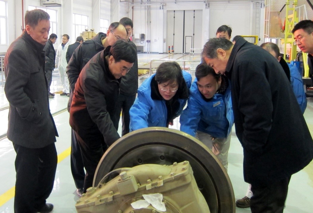 图为局党组成员、副局长朱望瑜(左2)在太原动车所检查春运设备整修情况。