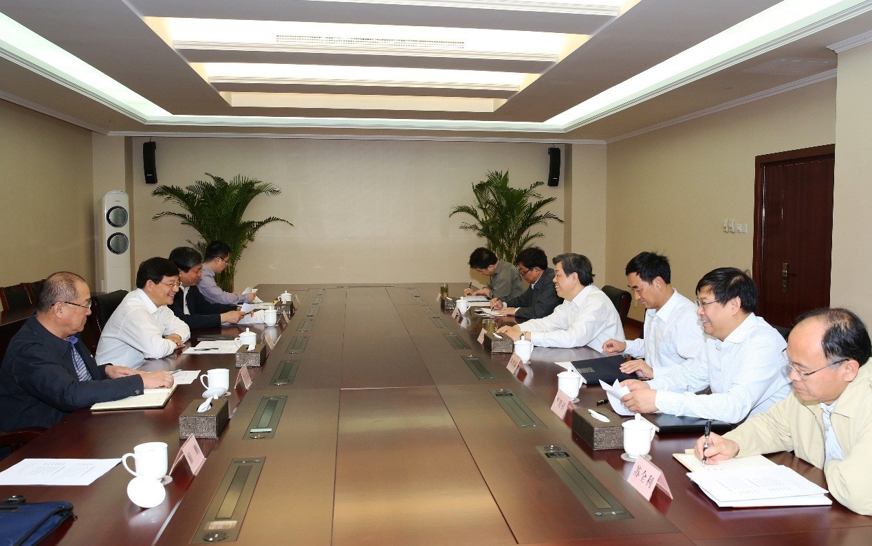 5月14日上午,国家铁路局局长陆东福(右四)与来局调研的国家发展改革委副主任胡祖才(左二)一行进行座谈,双方就铁路发展规划、技术标准、科技创新、工程质量安全监管及铁路“走出去”等工作深入交换了意见。