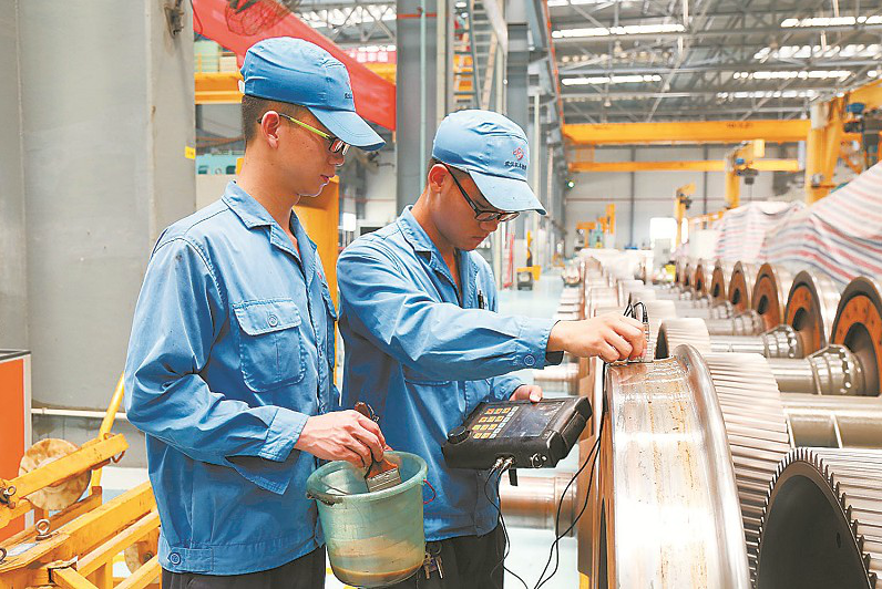 暑期,武汉大功率机车检修段认真开展机车惯性病害专项整治,全面提升机车运用质量。图为该段职工在为机车轮对进行超声波探伤。图片摄影:廖超
