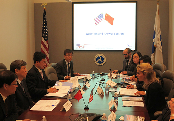 图为陆东福局长(左二)与美国联邦铁路署署长萨拉˙范博格(右一)共同主持铁路工作组会议