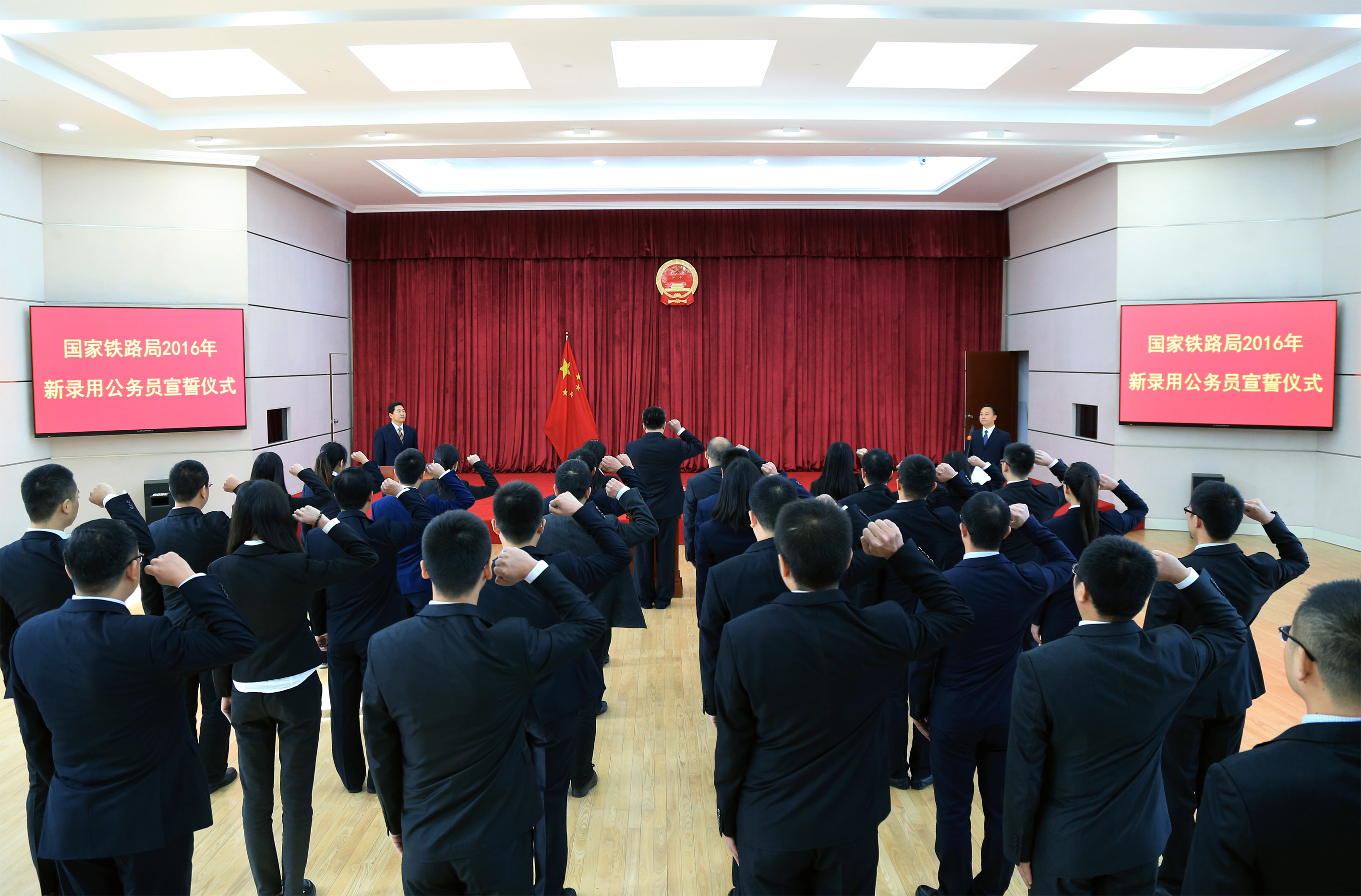 10月28日上午,国家铁路局在局机关举行2016年新录用公务员宪法宣誓仪式,今年以来国家铁路局新录用公务员共33人依法进行宪法宣誓。