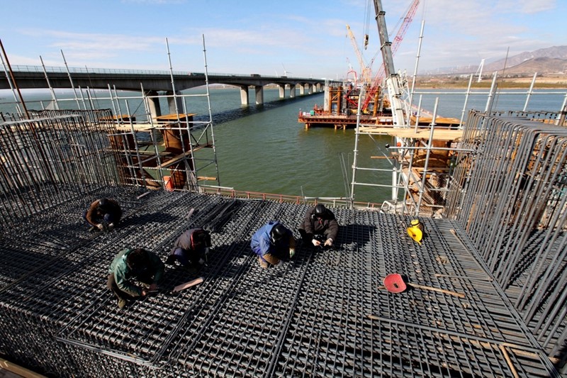 新建京张铁路官厅水库特大桥加紧建设