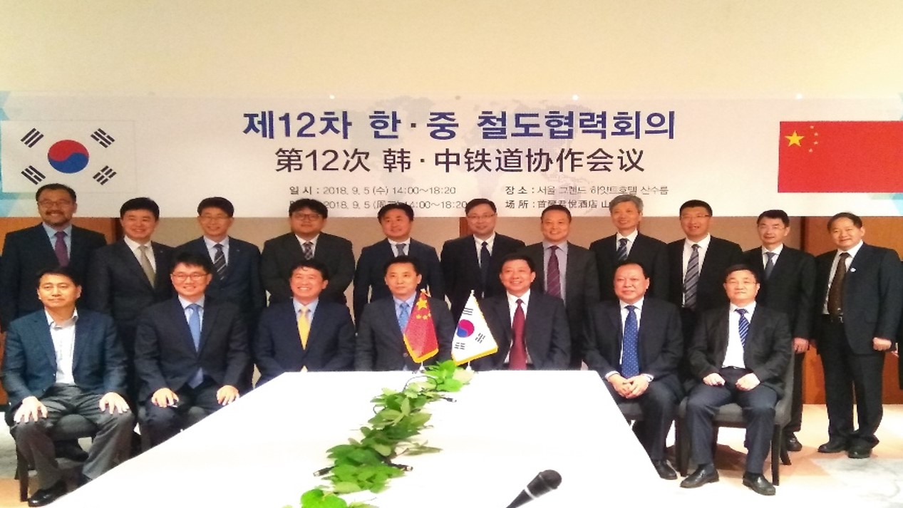 9月5日,中韩铁路合作第十二次会议在韩国首尔举行,会议由中国国家铁路局副局长刘克强与韩国国土交通部铁道局长黄晟圭共同主持。中韩铁路合作会议是根据双方协议确定的定期会议交流机制?;嵘希骄凸餐匦牡囊樘饨辛松钊虢涣?。中国中车股份有限公司、中铁第一勘察设计院集团有限公司、中铁第四勘察设计院集团有限公司、中铁磁浮交通投资建设有限公司、西南交通大学,韩国国土交通部、韩国铁道施设公团、韩国铁道公社、韩国铁道技术硏究院、韩国交通硏究院等部门和单位有关代表参加了会议。