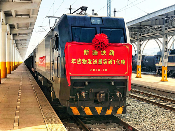 10月27日,一列满载5000吨味素的列车自乌鲁木齐西站开出,驶往数千公里外的连云港站,新疆铁路年货物发送量首度突破1亿吨。