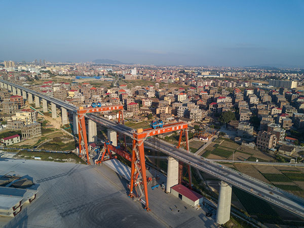 近日,中铁十一局新建福(州)厦(门)铁路灵川制梁场上呈现一派忙碌的景象。该制梁场承担着为新建福厦铁路多个标段施工提供箱梁的任务,施工单位精心施工,确保箱梁生产质量。新建福厦铁路是国家“一带一路”建设重点工程,设计时速350公里,预计2022年建成通车。
