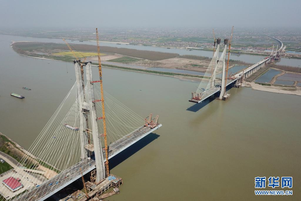安九铁路鳊鱼洲长江大桥主桥主塔全部封顶