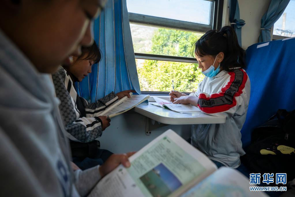 在这列特别的“校车”上,学生们读书、聊天、玩耍,“慢火车”承载着他们的梦想,带着他们向着未来前行。