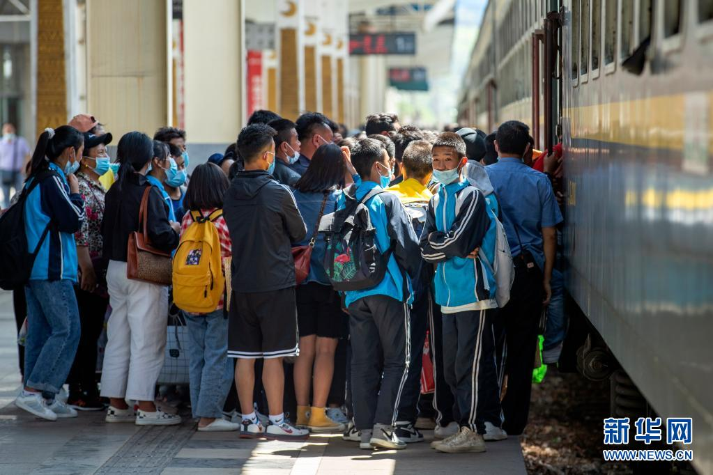 放学的学生和其他旅客在成昆铁路西昌站准备乘坐5634次列车回家。