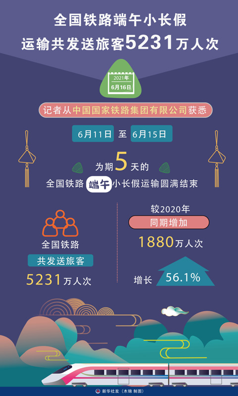 全国铁路端午小长假运输共发送旅客5231万人次