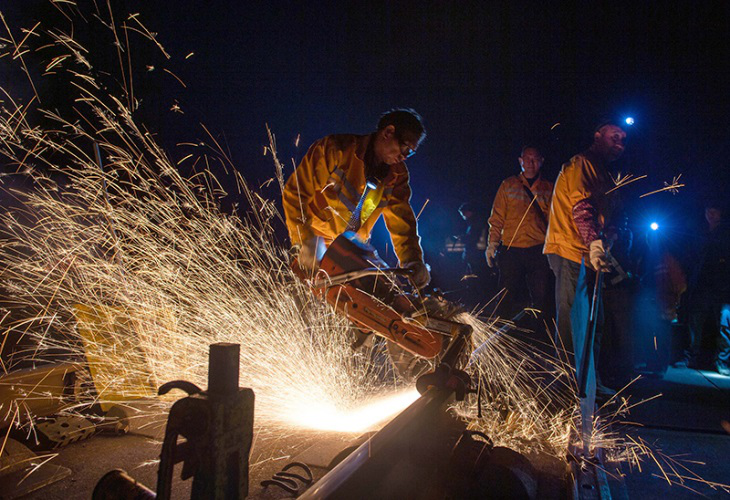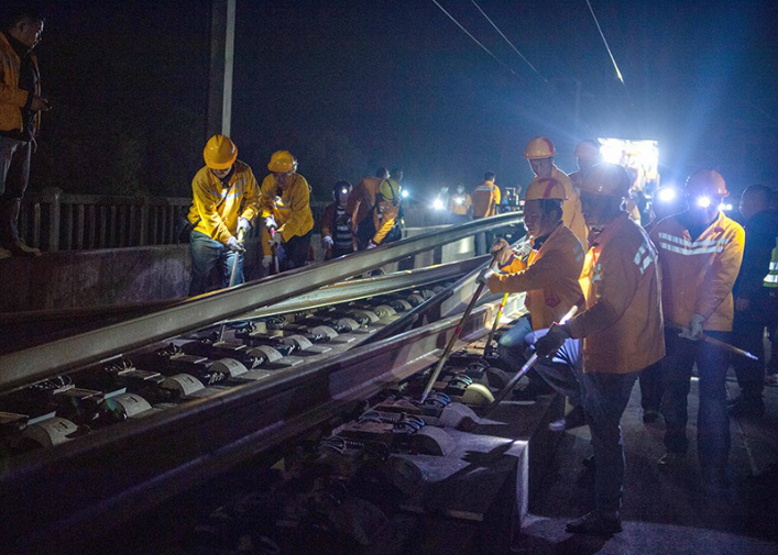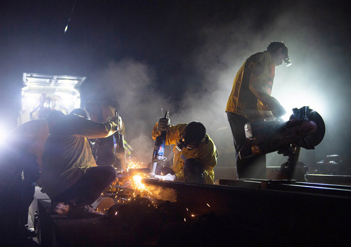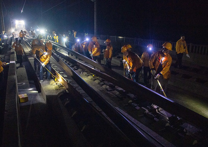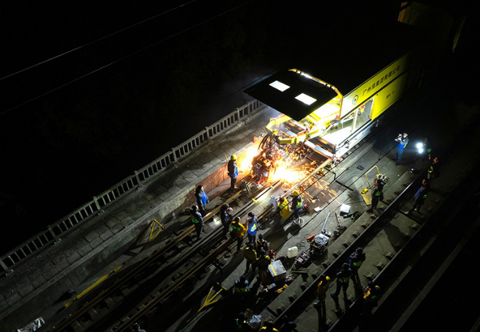 11月2日,在京广高铁株洲西至衡山西区间,广铁集团广州工务大修段衡阳焊轨车间工人在不影响线路运行的情况下,开始对京广高铁钢轨进行一体化换轨施工。据了解,此次施工共需更换钢轨20公里,旧钢轨为2009年建成,部分钢轨磨耗值接近大修标准,影响运输安全。本次施工预计12月初完成。