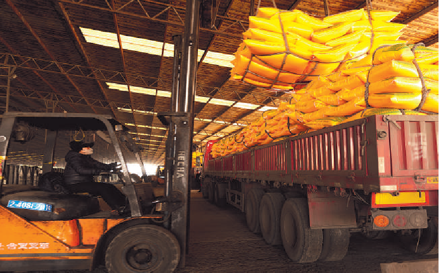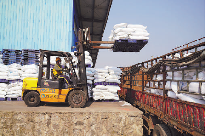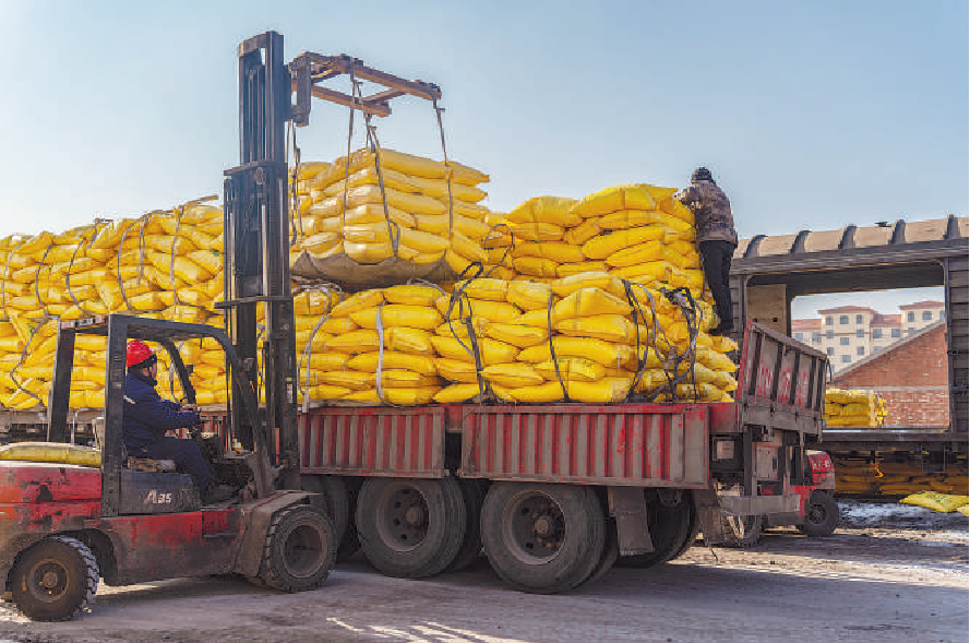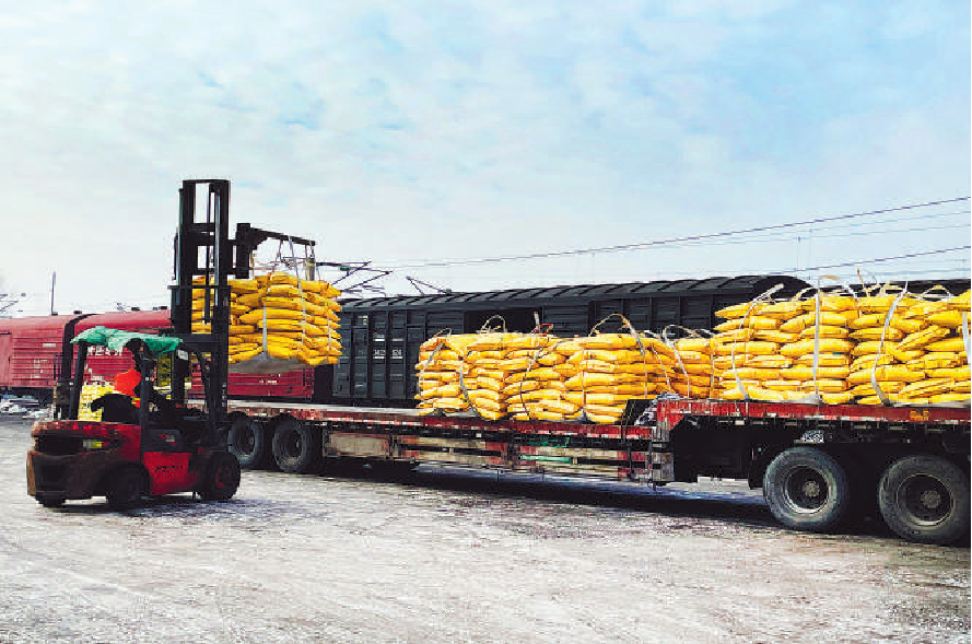 哈尔滨车务段为保障春耕物资运输畅通,合理制订卸车计划,安排有效货位组织化肥装运??到?摄
