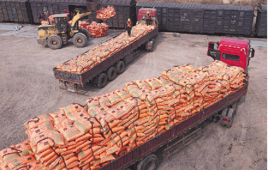 侯马车务段侯马北站积极组织人员,保障春耕农用物资运输,满足农民春耕物资需求。王文华 摄