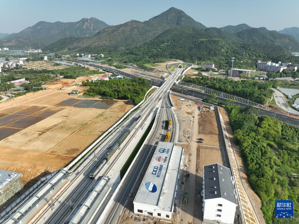 近日,杭州至温州高速铁路启动联调联试,进入工程验收关键阶段。杭温高铁北起杭州桐庐东站,途经金华市浦江县、义乌市、东阳市、磐安县,台州市仙居县,至温州市温州北站后,利用既有的杭深线延伸至温州南站,新建正线长度约260公里,设计时速350公里。全线设桐庐东、浦江、义乌、横店、磐安、仙居、楠溪江、温州北、温州南等9个车站,有隧道81座,特大、大中桥梁117座,桥隧比高达94.5%。