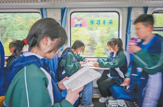 从重庆市秀山土家族苗族自治县开往重庆市的5610次慢火车上开设了学习车厢,服务学生出行。