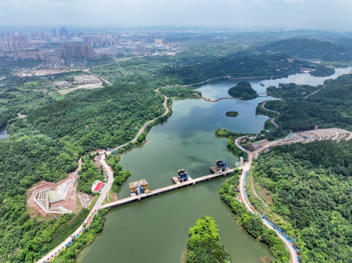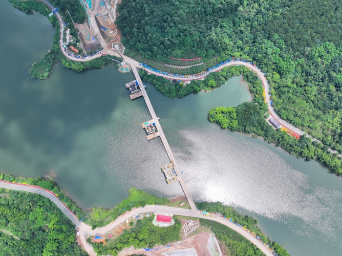 位于重庆市铜梁区的成渝中线高铁玄天湖大桥建设现场。