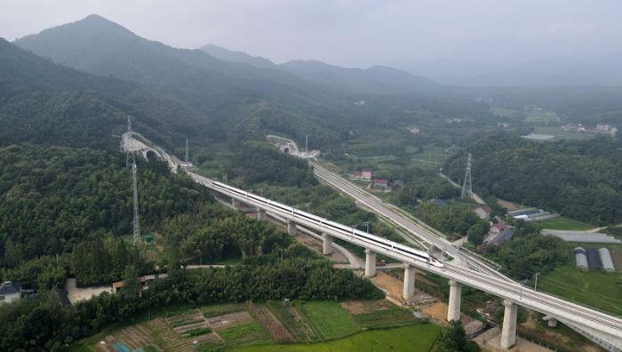 8月29日上午,首趟试运行列车G55201次从宣城站开出,沿着新建宣城至绩溪高速铁路(简称宣绩高铁)驶向绩溪北站方向进行列车运行图参数测试,标志着宣绩高铁建设进入试运行阶段,全线开通运营进入倒计时。