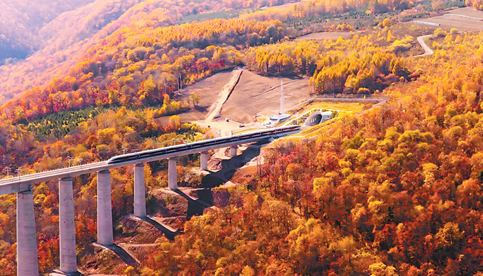 纵观全线,在长白山余脉与辽河平原间,沈白高铁以77%的桥隧比穿越山水。