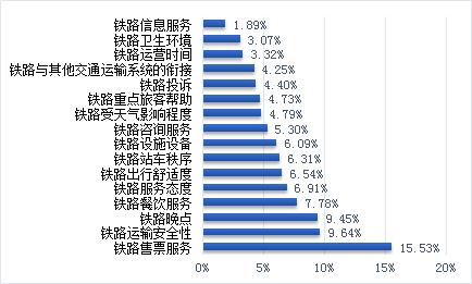 根据铁路旅客运输服务质量调查数据,公众对铁路售票服务最为关注,其他超过关注平均值的依次为铁路运输安全性、铁路晚点、铁路餐饮服务、铁路服务态度、铁路出行舒适度、铁路站车秩序。针对这些重点内容在新标准中提出了相应的要求。