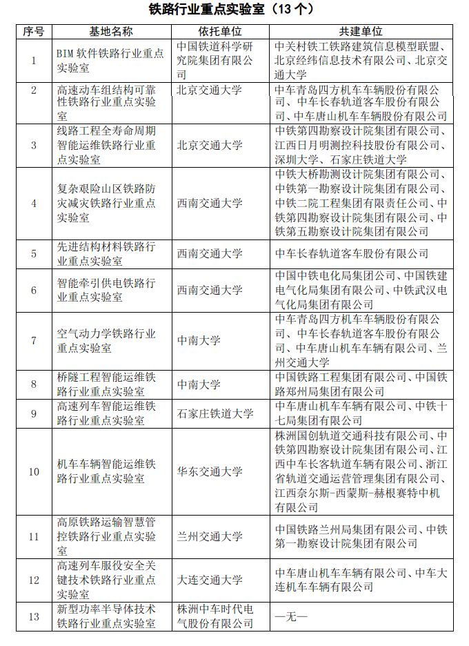 根据《铁路行业科技创新基地管理办法(试行)》(国铁科法规〔2020〕38号),国家铁路局组织开展了第二批铁路行业科技创新基地认定工作,现将认定结果予以公布。