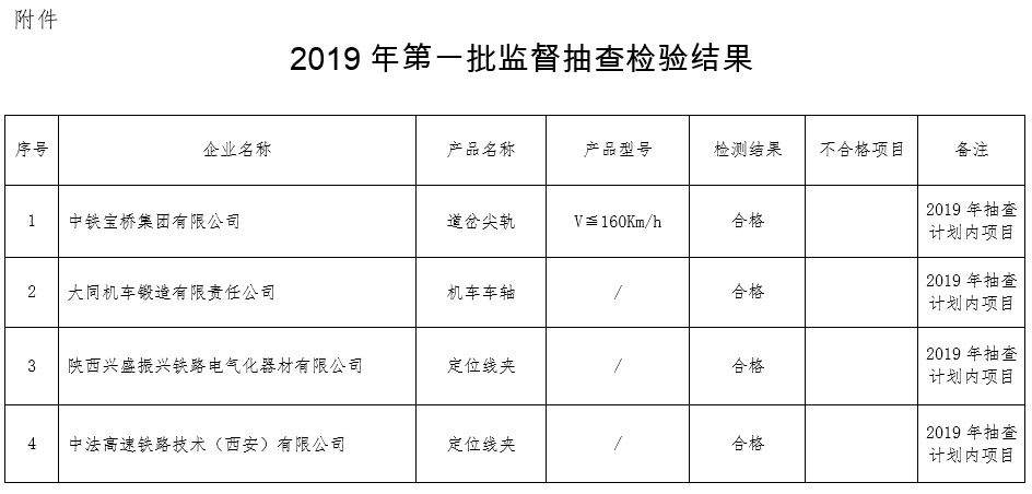 西安铁路监督管理局关于监督抽查铁路专用产品质量情况的通报(2019年第1批)