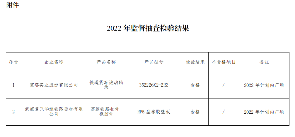 根据《铁路专用产品质量监督抽查管理办法》(国铁设备监规〔2020〕63号),现将2022年铁路专...